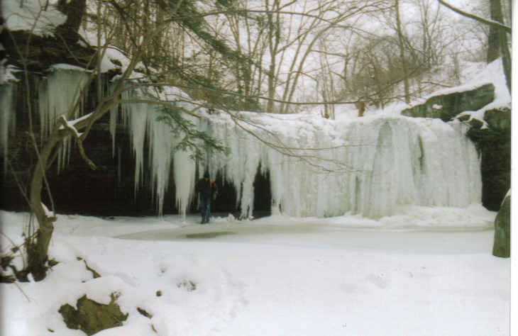 Boatyard Run Falls in Derry Township on Falls Rd. Winter of 2005. I am in first photo on left side of falls, walking back toward camera which was set on a tripod with timer running