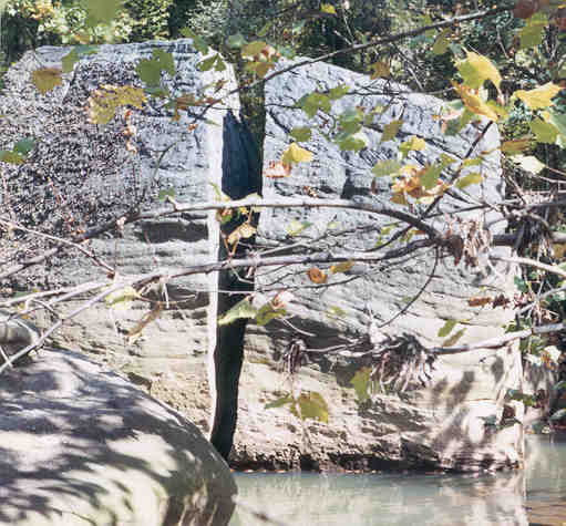 Natural rock ledges where Eastern Phoebe & Rough-winged Swallow nest at Loyalhanna Lake in Westmoreland County