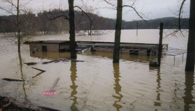 Bush Recreation Area, Loyalhanna Lake. The concession trailer is mostly submerged: Bush Rec | Bush Rec