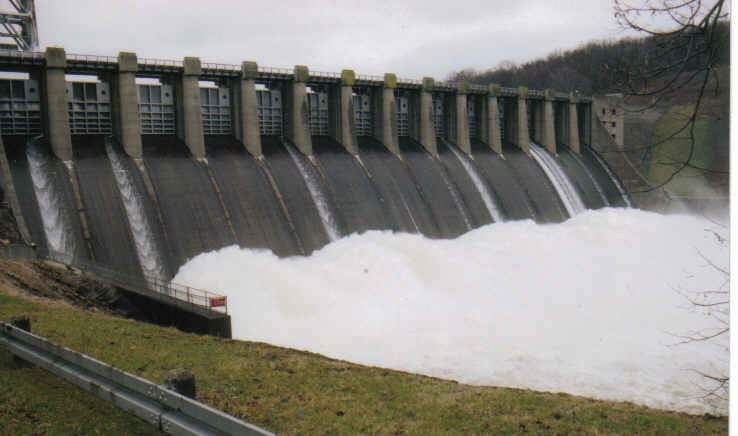 Conemaugh Dam, on the other (upriver) side of the dam the water level was above the spillway and onto the crest gates: Conemaugh Dam
