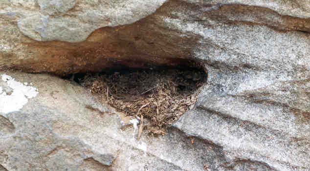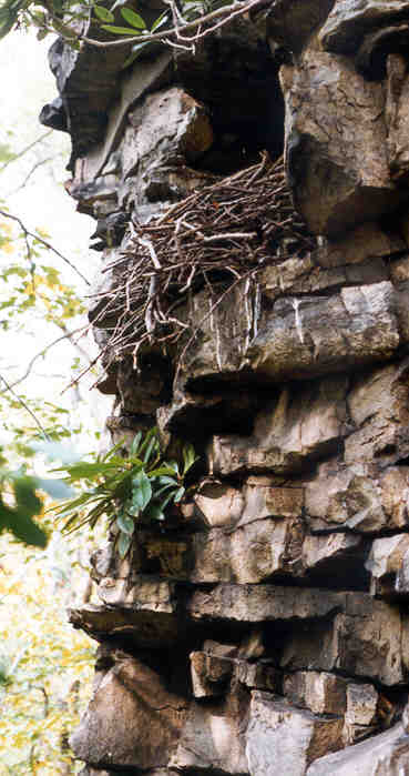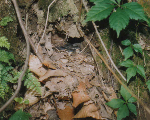 Rough-winged Swallow nest in rock ledges at Loyalhanna Lake, 7/10/2000