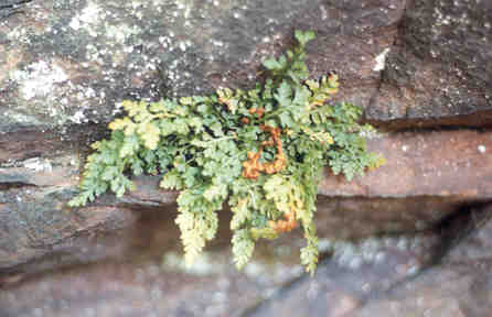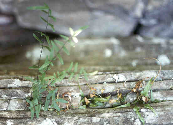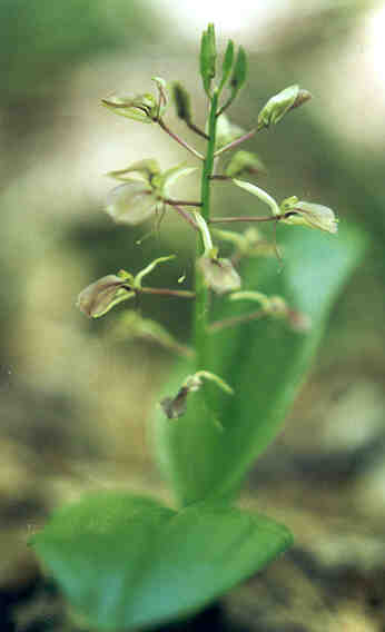 Twayblade Orchid, June 10 99. A small plant tough to photograph, no bright colors to capture, the flowers were somewhat translucent. Nor did the photo scan well.