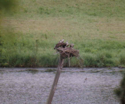 The family of Osprey, 2 adult & 3 young, at Donegal Lake, June 24 2005. The young are not easy to see when they are down low in the nest.