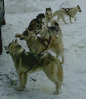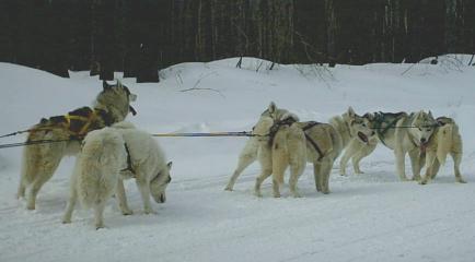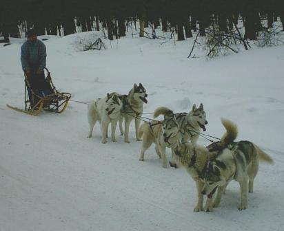Laurel Summit is part of the "snow belt". The snowy winter of 2003-04 was good for winter sports. Mushers with their sled dogs ran Laurel Summit Road. Face1 | Face2 | Face3 | Dog truck | Dog truck | Beside truck | Stopped | Stopped | Stopped | Running | Running | Running | Dog | Sled | Dog team | Dog team